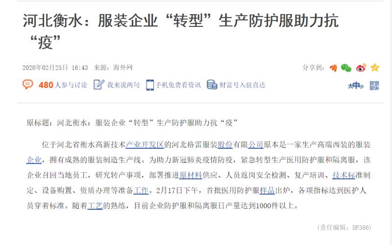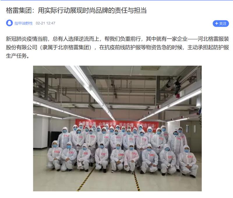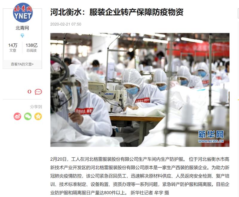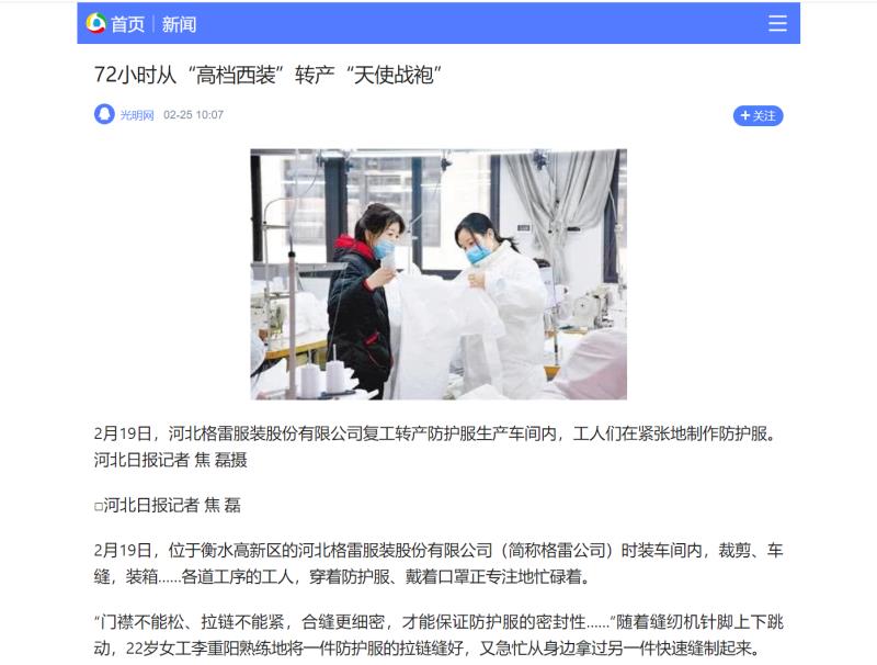 近日,河北格雷轉產抗疫的新聞風靡國內外各大媒體,點擊量累計突破百萬。大家對河北格雷逆行而上的勇氣和責任擔當給予了高度評價。