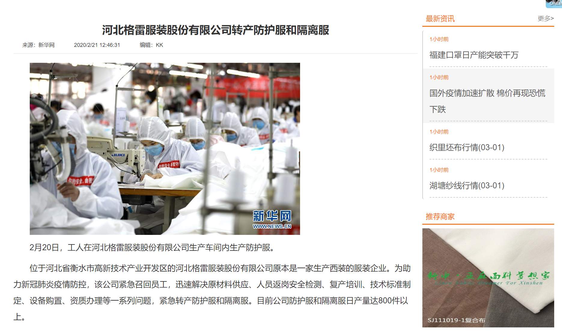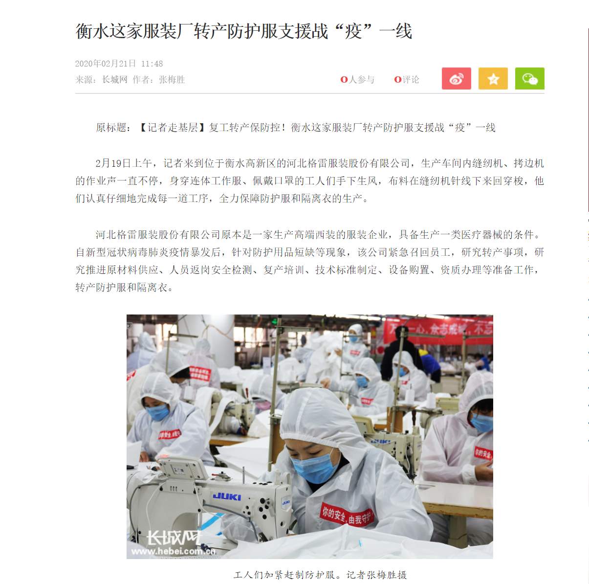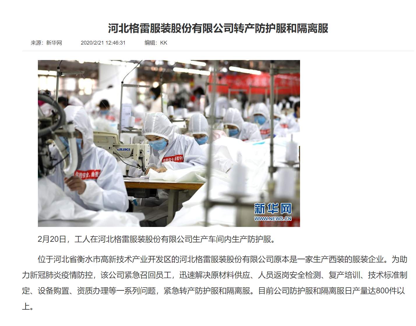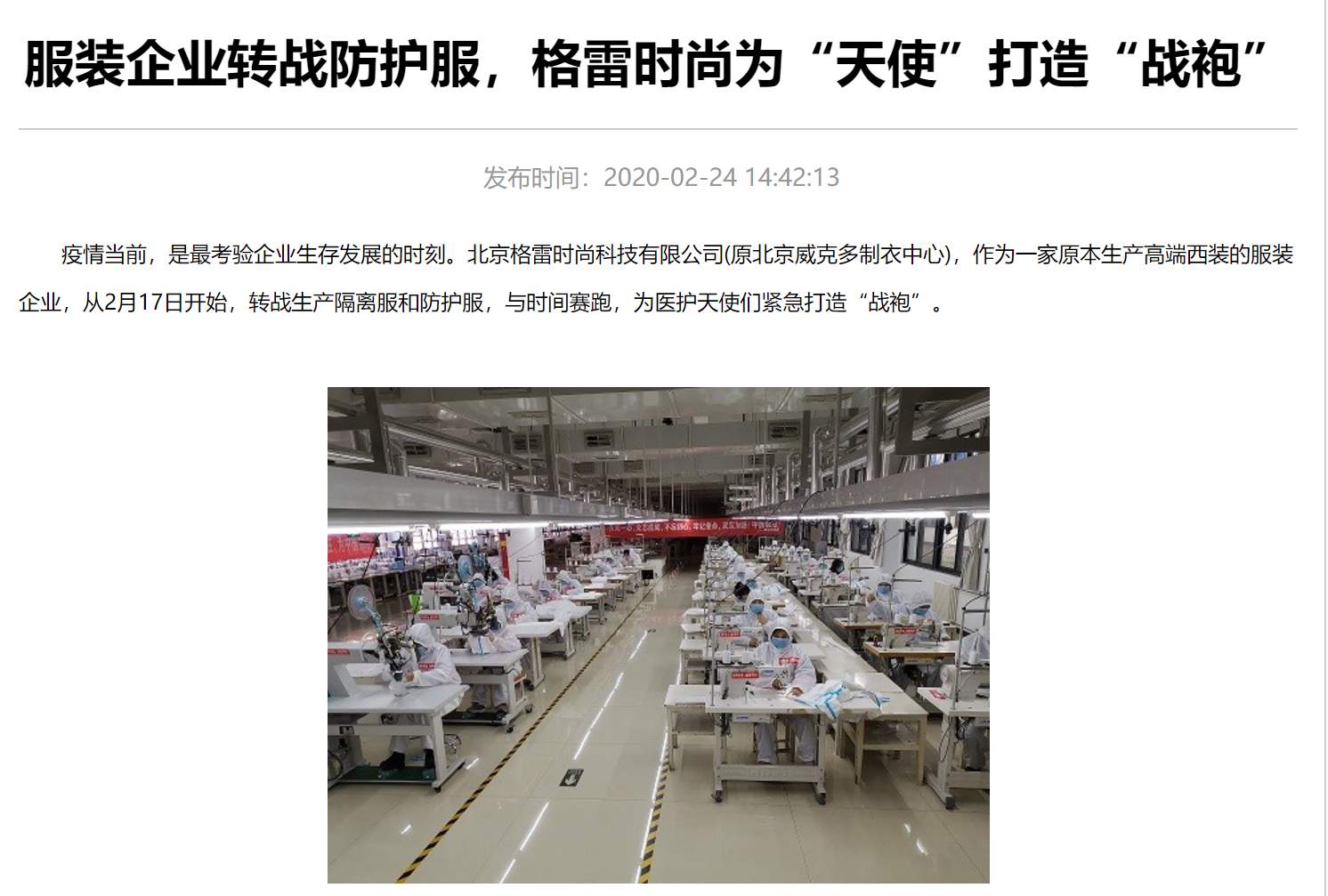 “抗擊疫情的醫務工作者們是要穿著這個衣服進ICU的,我們一定會把它做得嚴嚴實實的”,這是河北格雷防護服生產線上的一位工人在接到防護服生產任務后說的一句話。
