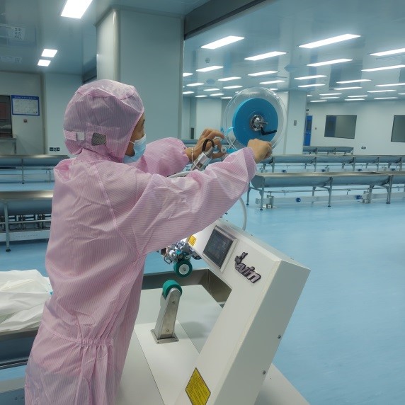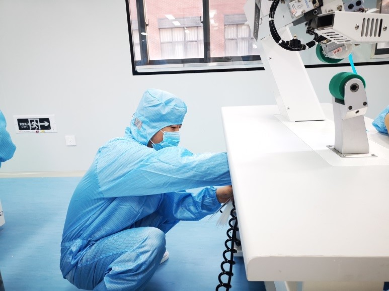 202077日,120010萬級潔凈車間開放投產。當天早上6:00,第一臺用于防護服生產機器進入無菌車間,經過基礎調試后,車間開始了緊張的生產,12分鐘后,第一件防護服正式下線。